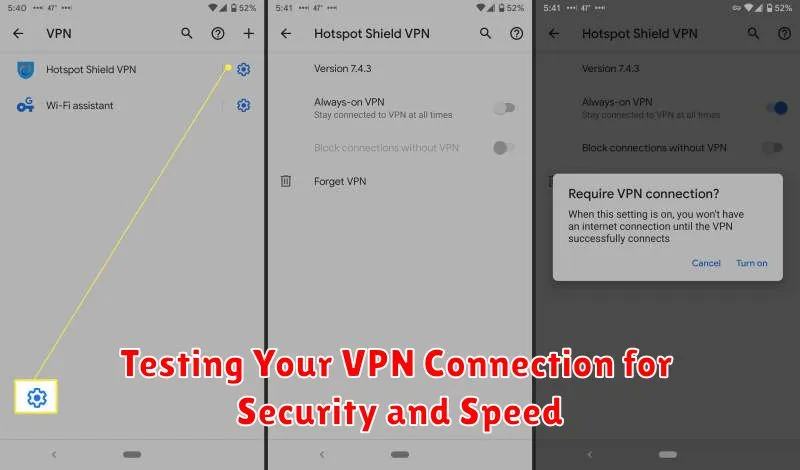 Once your VPN is active, verifying its effectiveness is crucial. This involves checking for IP address leaks and assessing the impact on your connection speed.